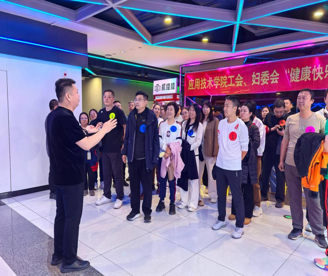 秋冬之交,暖意融融。为丰富教职工文化生活、缓解工作压力,更以运动为纽带凝聚团队力量,10 月 25 日,应用技术学院将活力舞台搬进帝湾潮玩娱乐运动街区,“健康快乐,友你同行” 教职工室内秋趣活动在此温馨启幕。全体教职工暂别案头的教案与文件,换上轻便舒适的运动装,脸上带着期待的笑意踊跃参与,在轻松愉悦的氛围里,沉浸式享受运动竞技与联欢互动带来的双重活力。